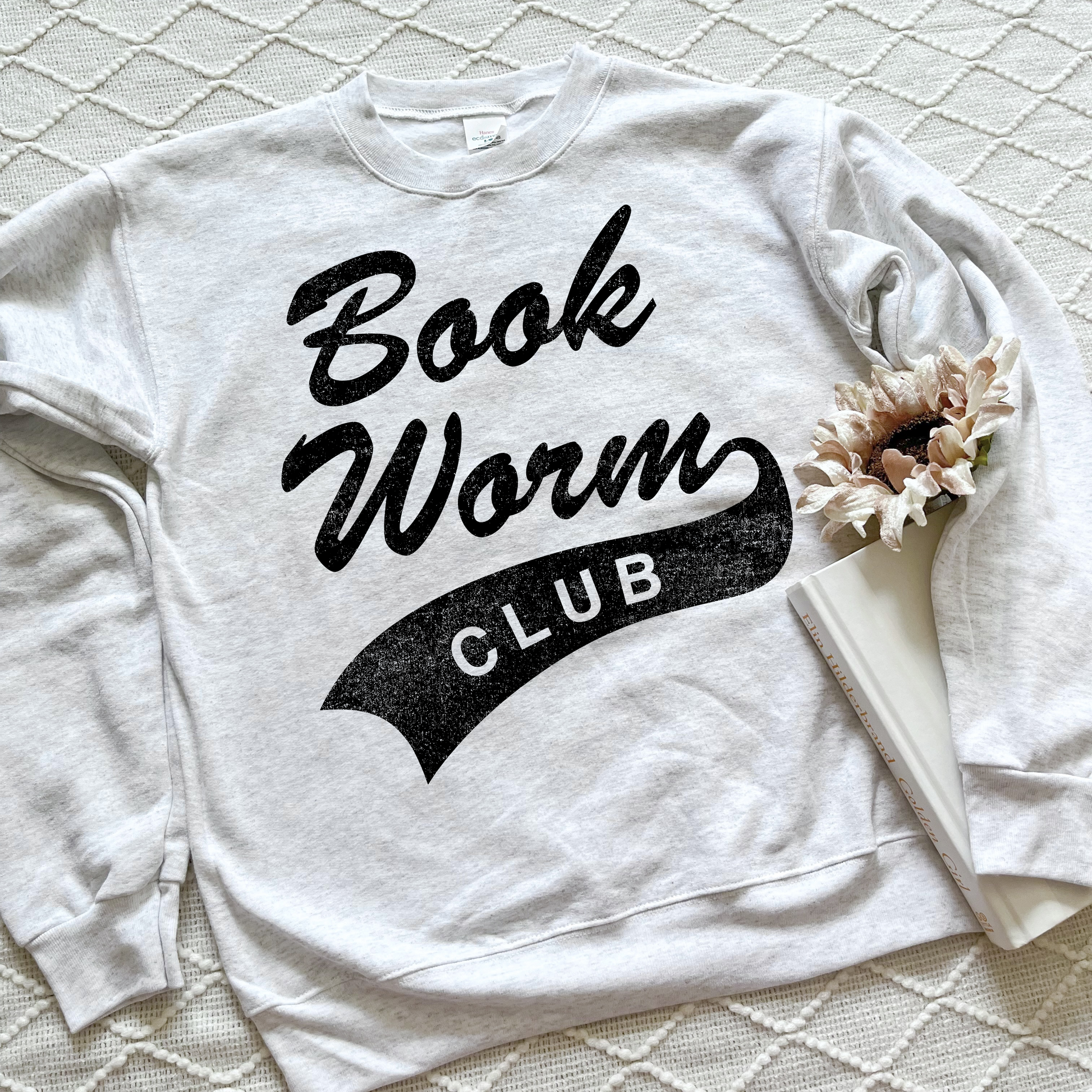 Showcase your love of reading with this cozy "bookworm club" sweatshirt. Every shirt is hand-pressed and packed in-house, by our small business team.