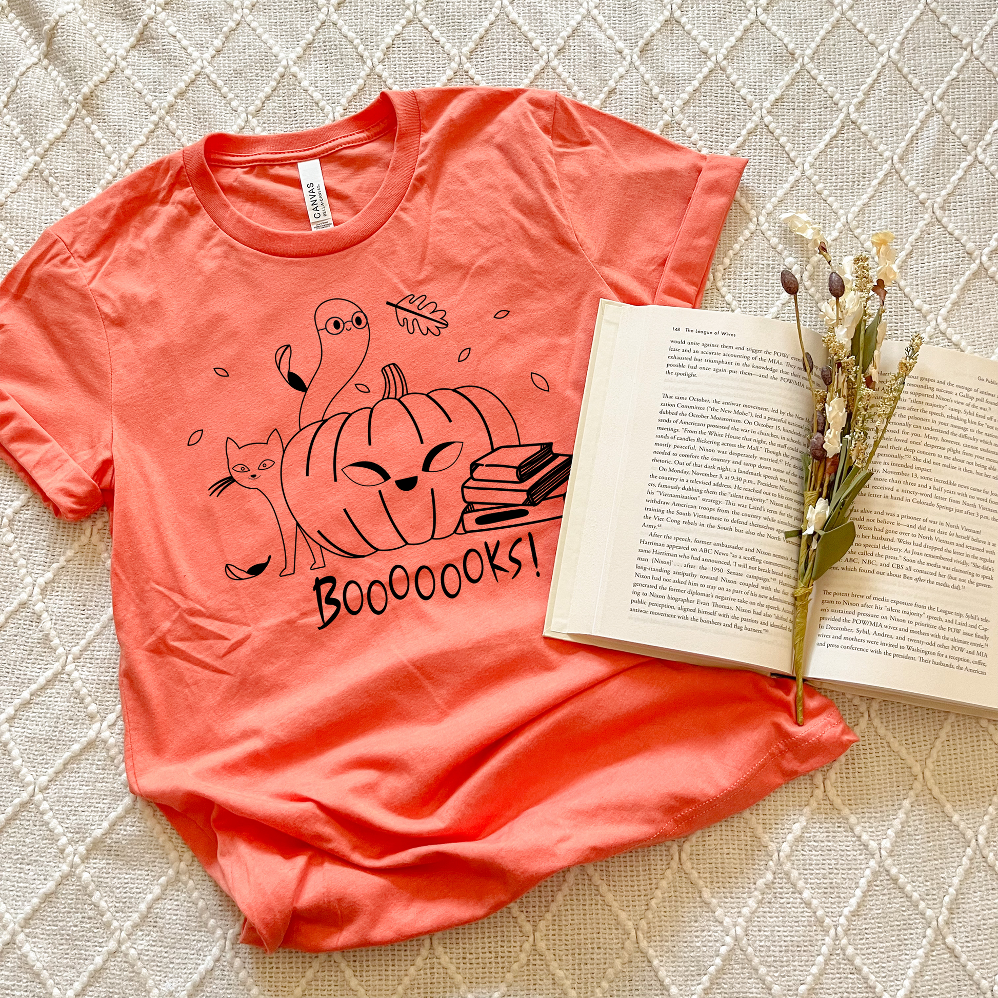 Showcase your love of reading, and autumn, with this "booooooks!" t-shirt. Every shirt is hand-pressed and packed in-house, by our small business team.