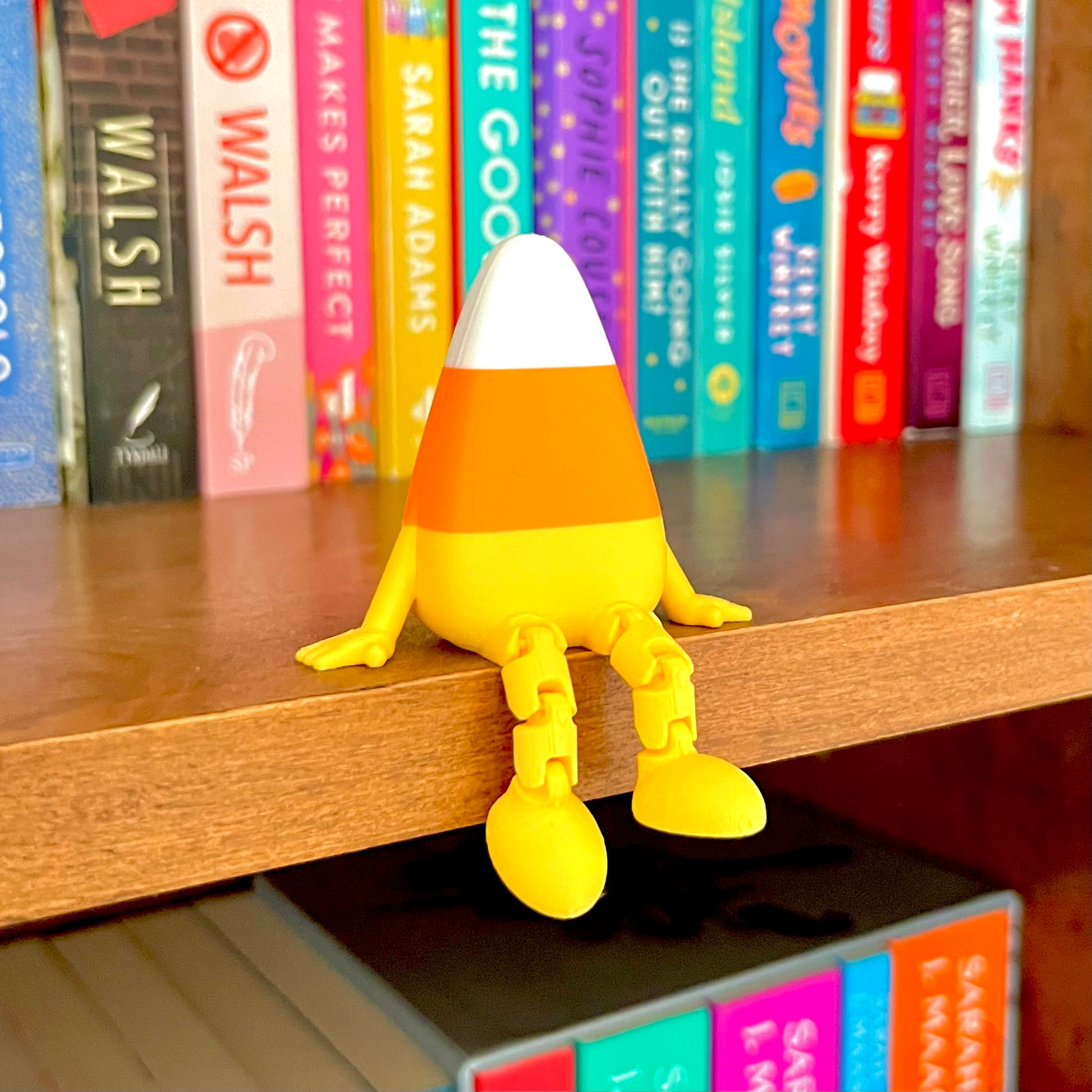 Add a playful pop of Halloween spirit to your space with this adorable 3D Printed Candy Corn book shelf buddy! Crafted with precision and personality, this mini candy corn features a classic tri-color design and whimsical dangling legs that hang cutely off the edge of your shelf, bookcase, or desk.