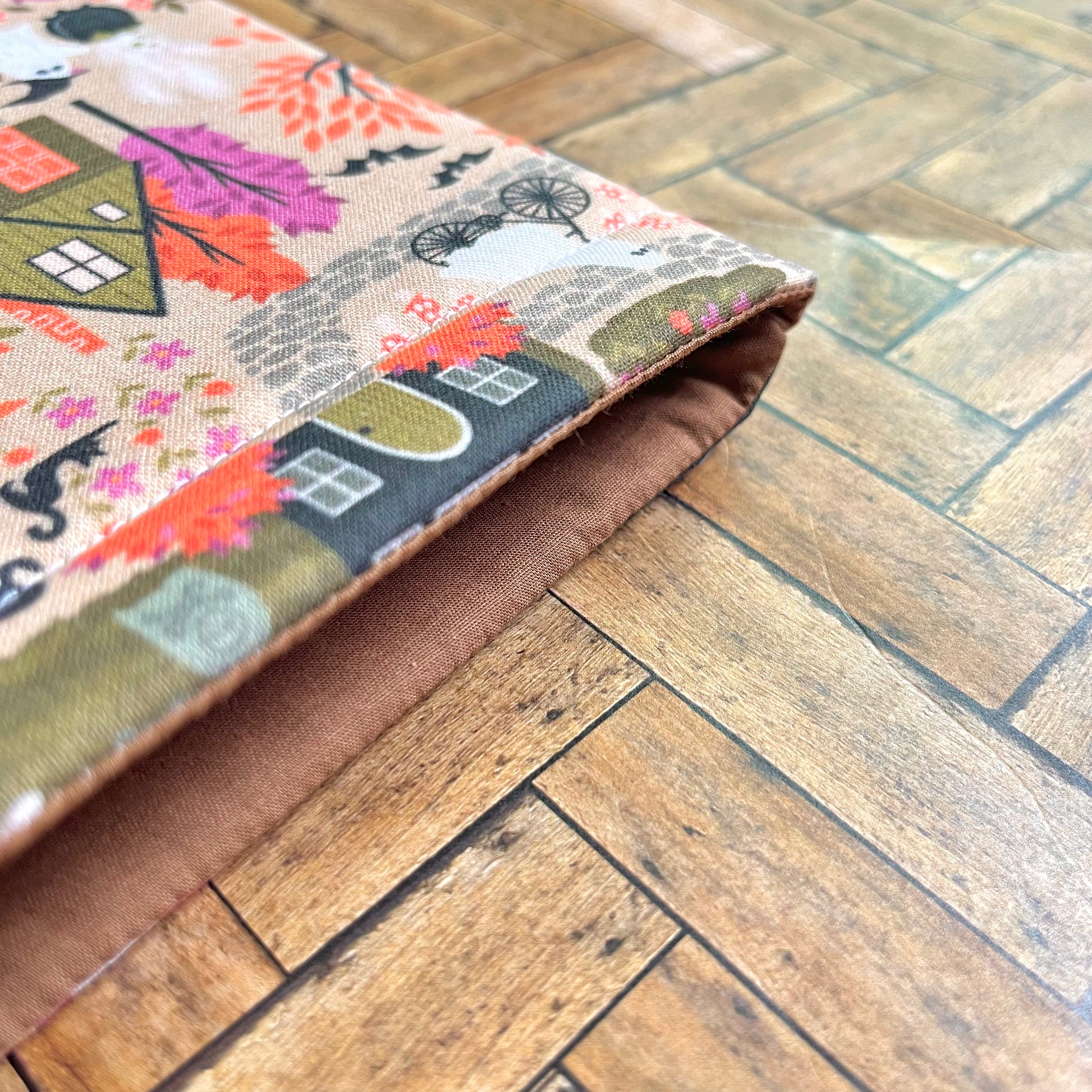 Print placement varies with each book sleeve. Fabric coloring may appear slightly different in person.