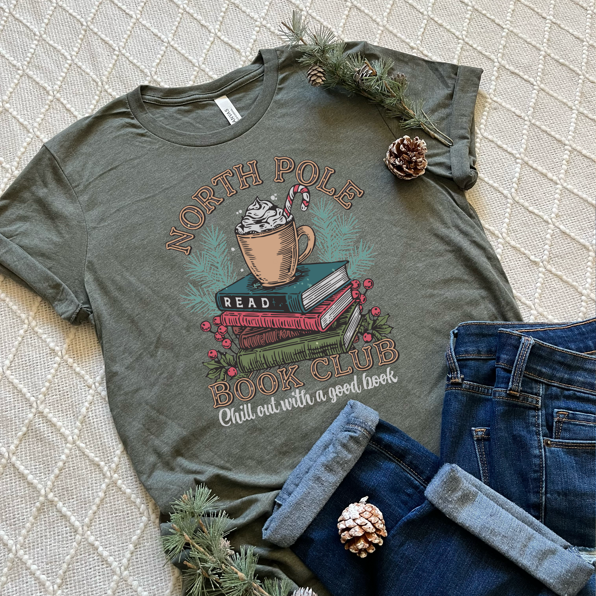 Celebrate your love of winter and reading with these "North Pole Book Club" cozy t-shirts!
