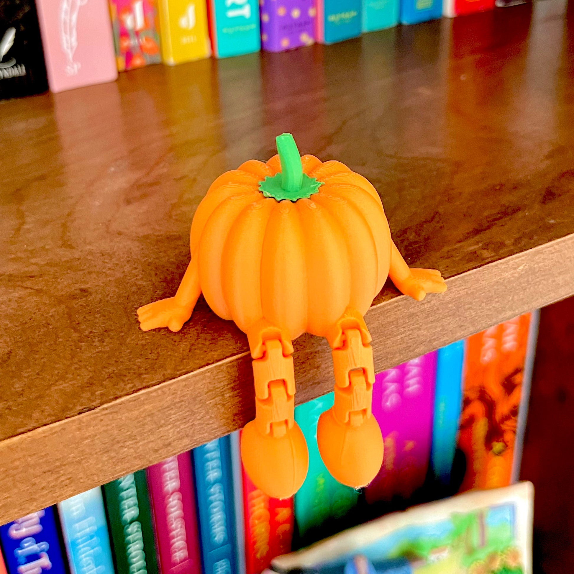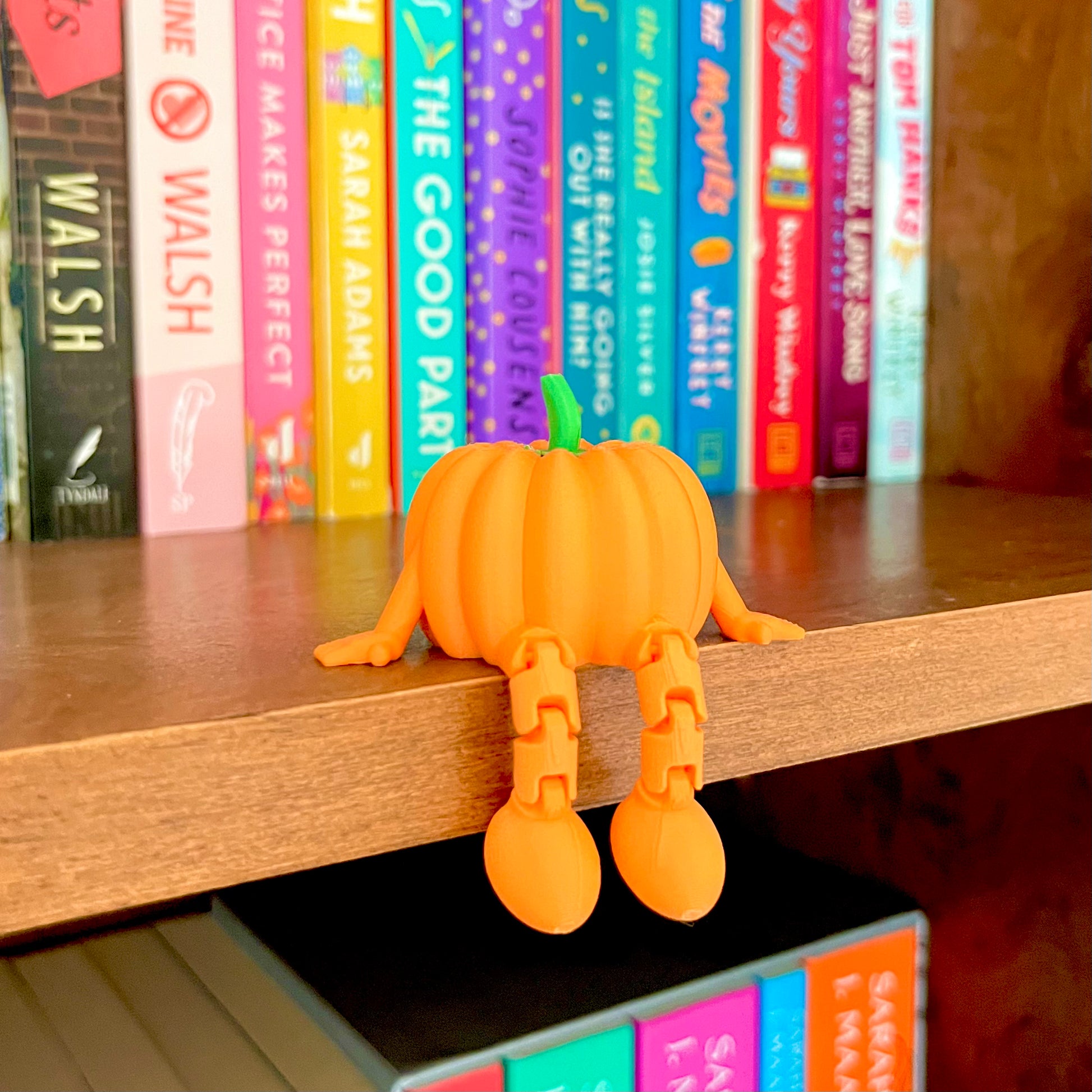 Meet your new favorite fall accent: the 3D Printed Pumpkin book shelf buddy! Crafted with durable, lightweight PLA filament, this charming little pumpkin features a smooth, detailed finish and a playful twist — dangling legs that swing sweetly over the edge of your shelf, mantel, or desk.