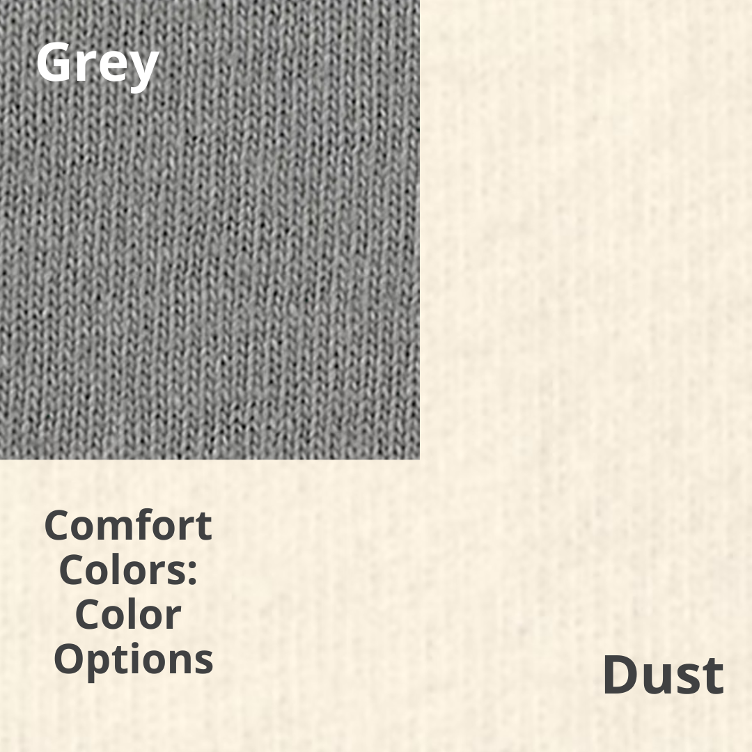 NOTE: The shirt has been photographed in Bella + Canvas colors. The coloring of the Comfort Colors shirts will differ slightly from the shade of Bella + Canvas that is shown in the photos. For Dust, Ivory will be used. For Grey, the Comfort Colors color "Gray" will be used.