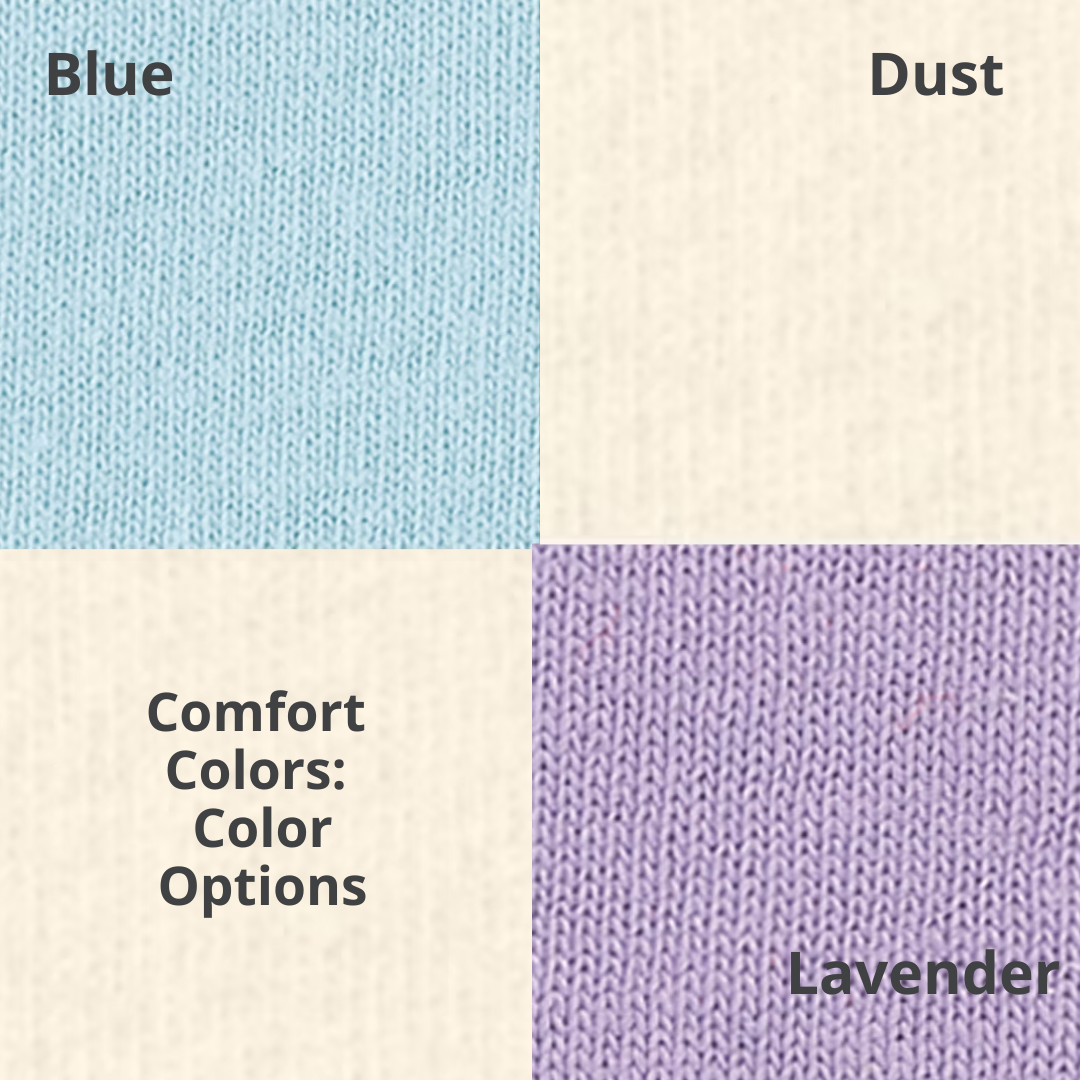 NOTE: The shirt has been photographed in Bella + Canvas colors. The coloring of the Comfort Colors shirts will differ slightly from the shade of Bella + Canvas that is shown in the photos. For Blue, Hydrangea will be used. For Dust, Ivory will be used. For the Lavender shade, Orchid will be used for the Comfort Colors option.
