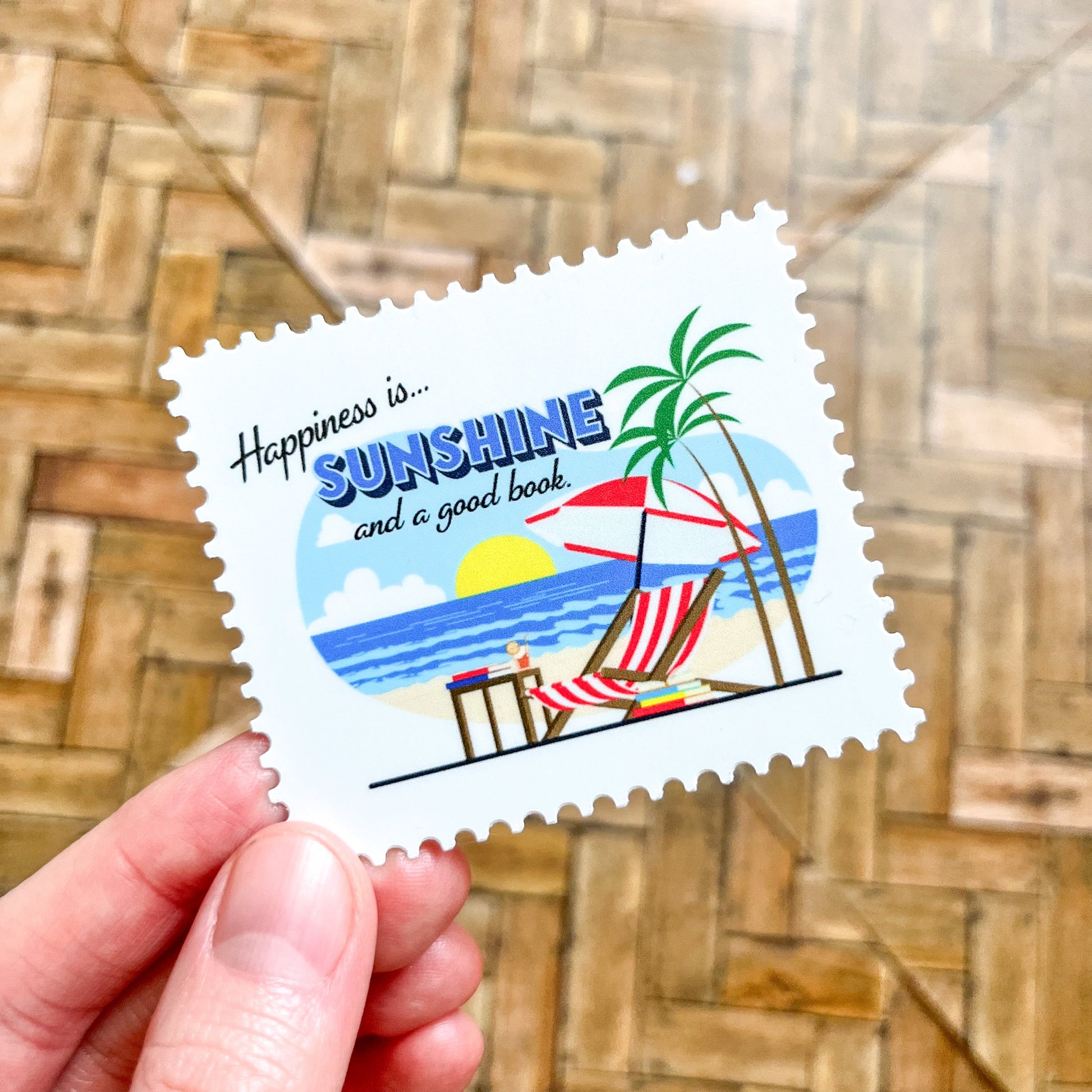 Celebrate your love of reading with this "happiness is... sunshine and a good book" sticker!